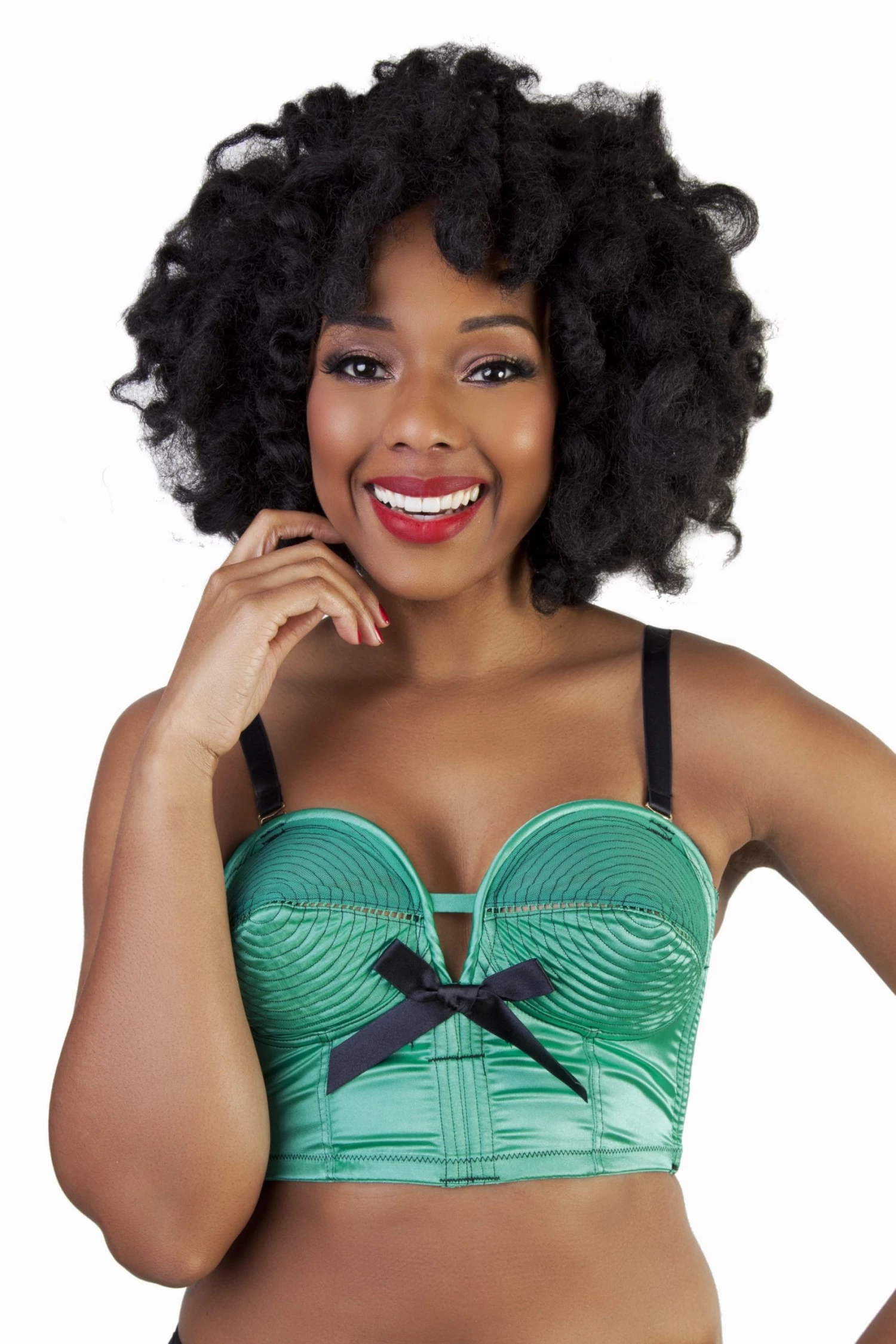 This bra is a winner for anyone who loves retro-inspired lingerie. The spiral stitch and emerald color are eye-catching, and the fit is fantastic. It’s supportive without being too tight, and the longline silhouette is very flattering. Great quality for the price!