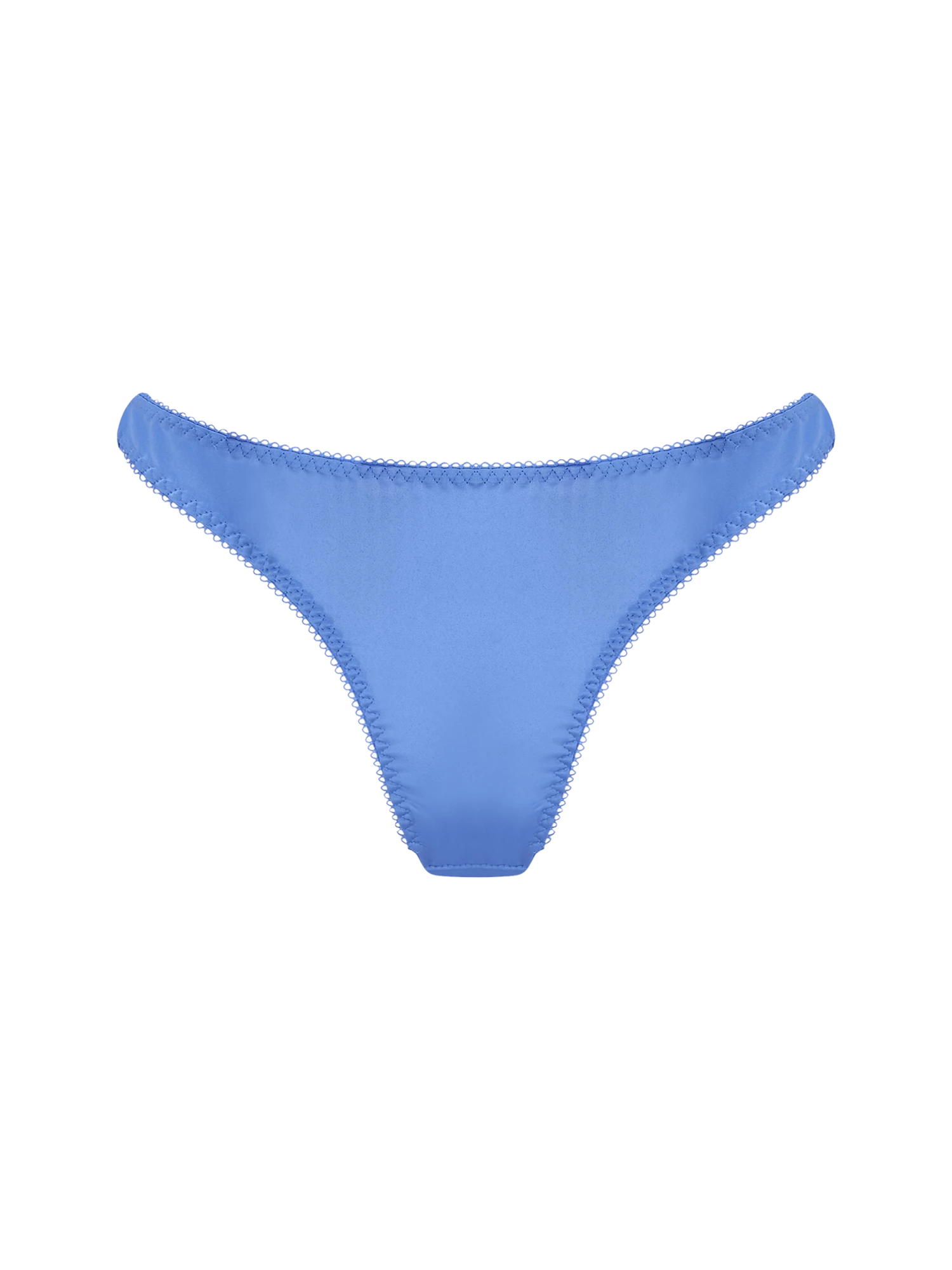 Coco de Mer’s playful ‘Grace’ open bow back knickers are made from beautiful cornflower blue satin with a cheeky tie up bow back. Complete the set with the matching bra.