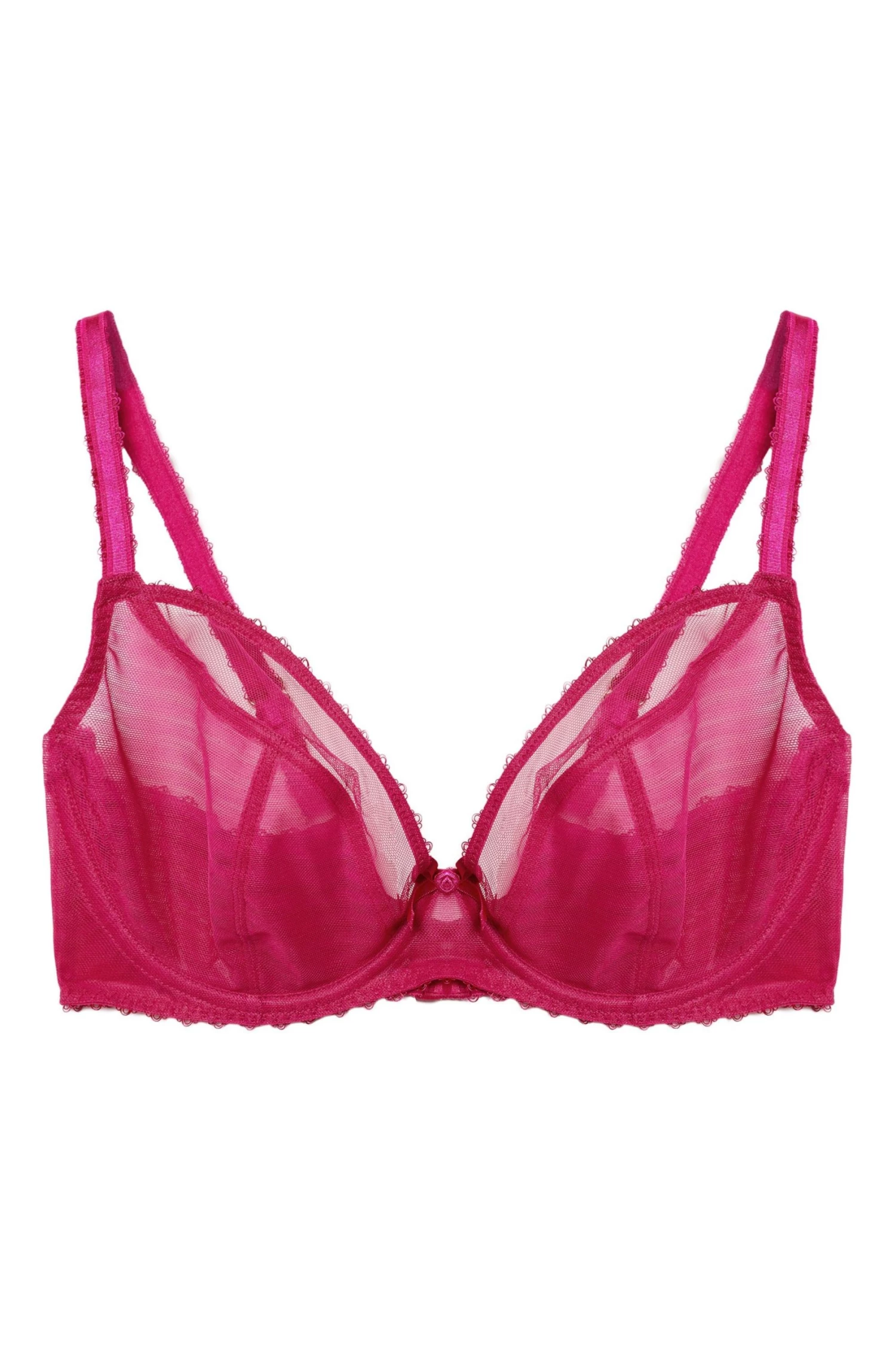 Our Grace Hot Pink Mesh Bra is the perfect everyday bra with pretty details. This plunge mesh bra is comfortable and supportive with its underwire, and low cut it’s the perfect balance between practical and sexy without trying too hard. Match with our Grace Brief or Thong for the full finished look.