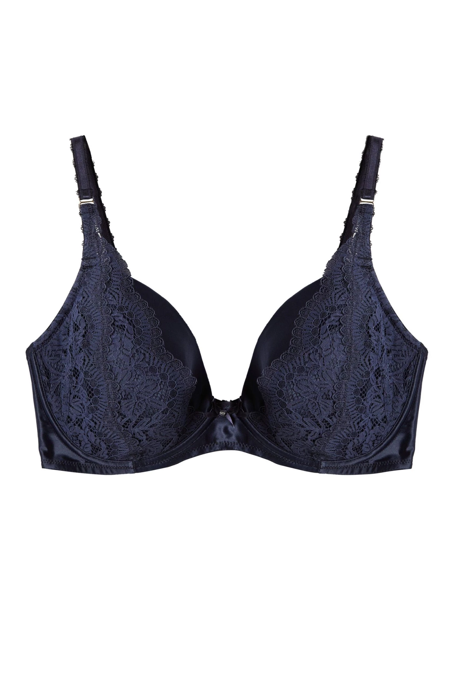 Feel sensational in our Sophia Navy Plunge Push up Bra. This push up bra features padded cups which are underwired for ultimate support, and finished with a pretty lace overlay and a bow at the centre. Match with our Sophia Brief for the complete classy co-ord.