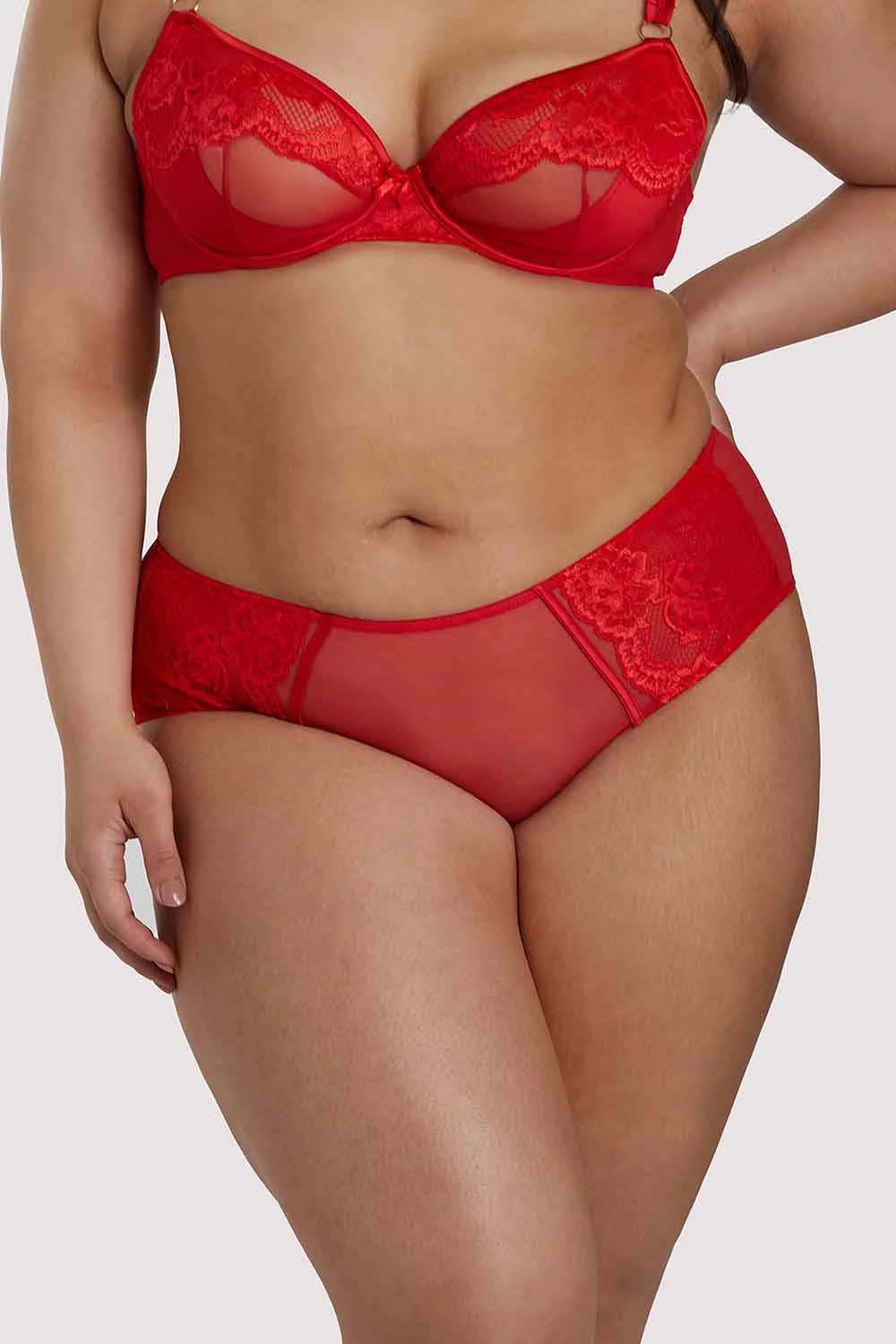 - Red mesh and lace