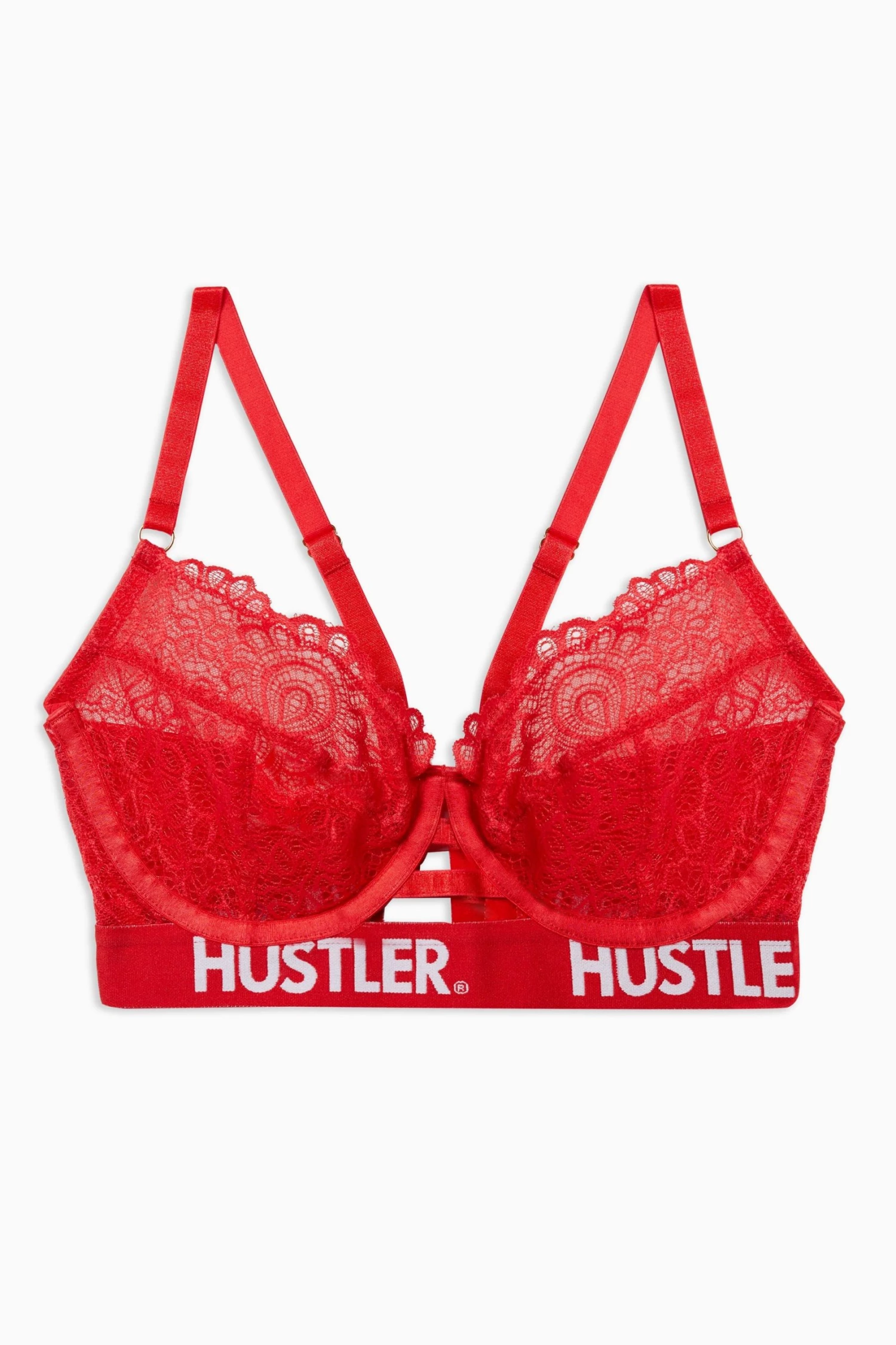 The Branded lace bra is unpadded, with floral lace cups. The band features a bold “Hustler” branded elastic. It’s the perfect everyday bra, with a twist!