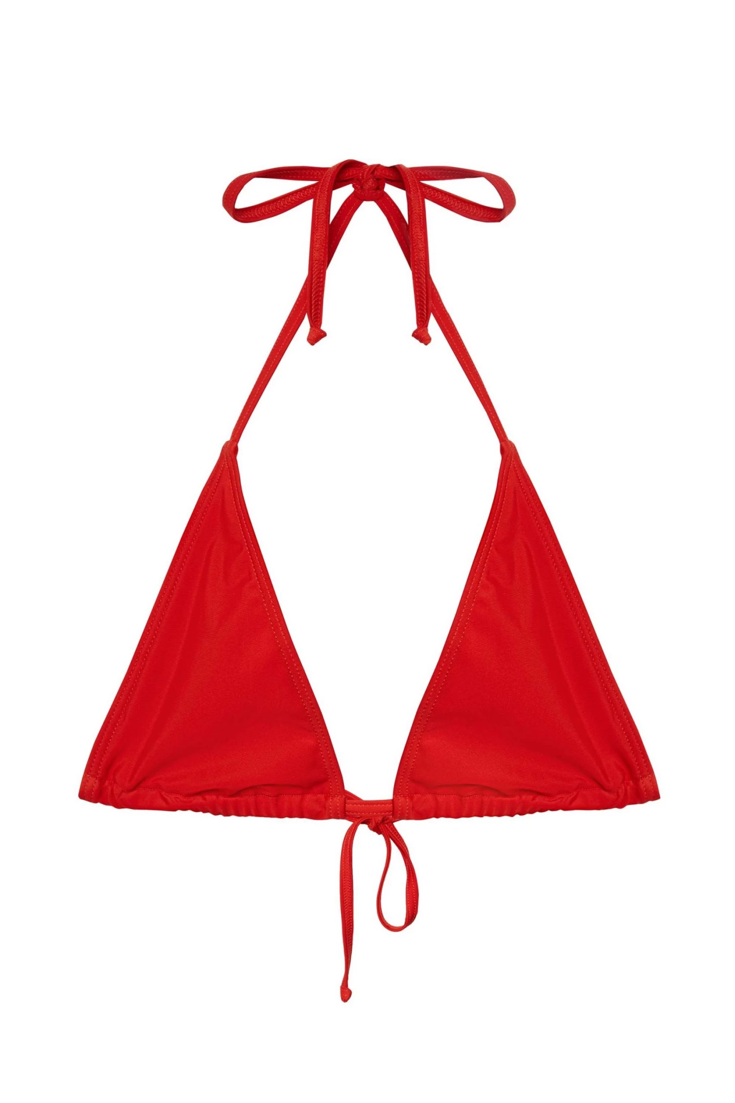 Turn up the heat with our red Hustler bikini, featuring a tie up halter neck. Style with the coordinating bikini bottoms to complete the look.