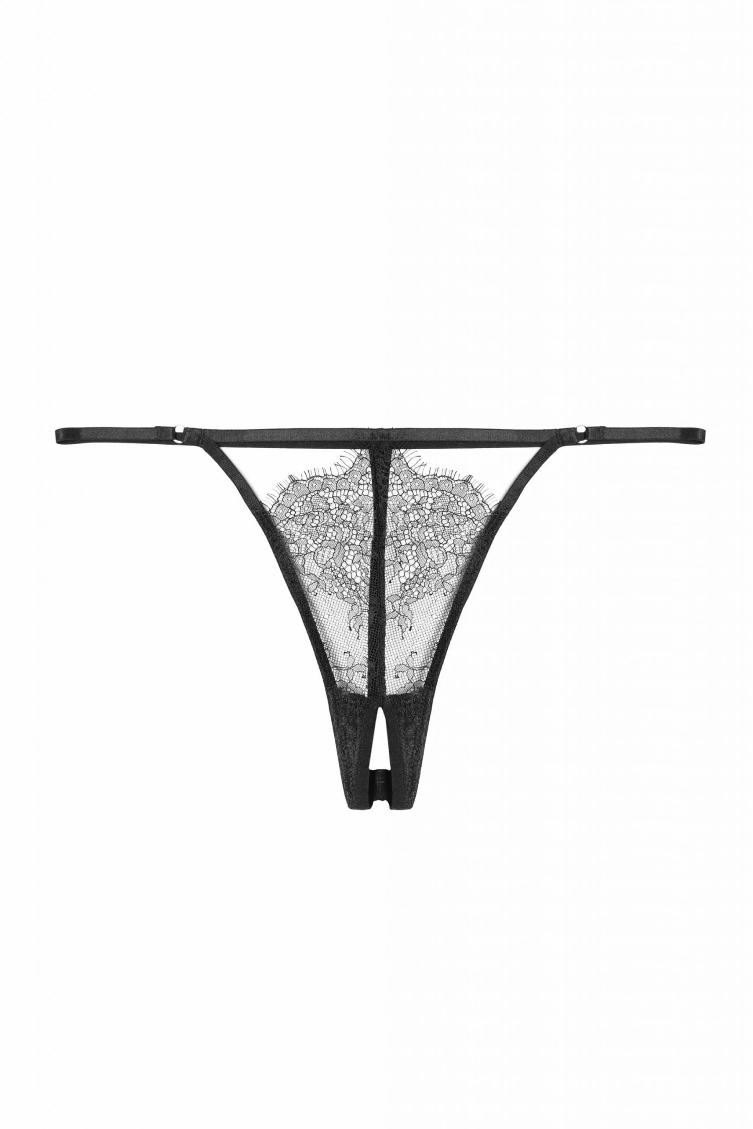 Naughty and seductive, Playful Promises black thong featuring an open gusset with delicate lace detailing to ensure you always feel your sexiest. Complete the look with a black bra from our collection.