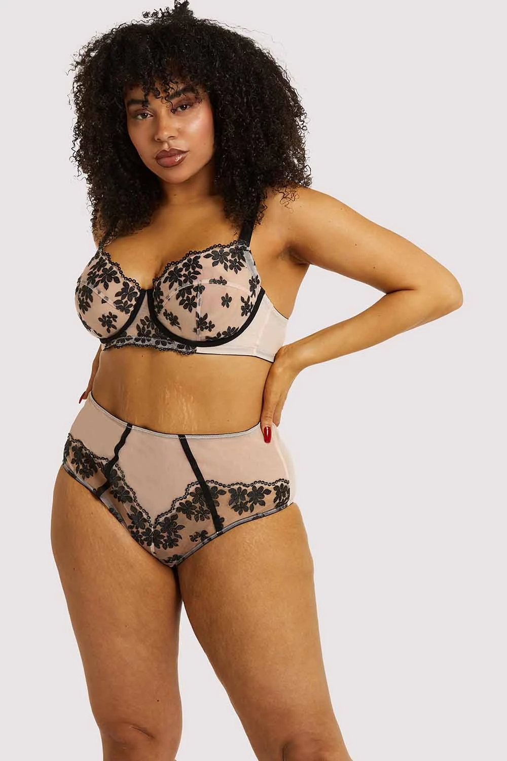 The Evie Bra has been designed to take pretty underwear to a whole new level! With stunning floral embroidered lace placed over sheer mesh fabric showing you a little of what’s beneath. Complete the look with the matching brief and suspender belt.