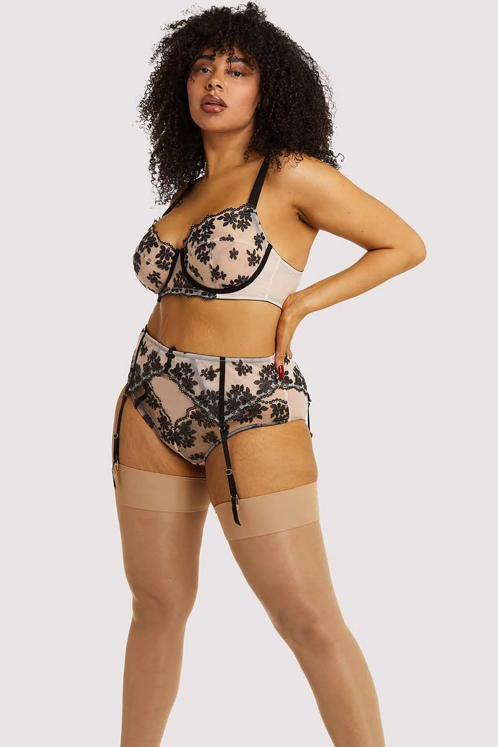 The Evie Brief has been designed to take pretty underwear to a whole new level! With stunning floral embroidered lace placed over sheer mesh fabric showing you a little of what’s beneath. Complete the look with the matching bra and suspender belt.