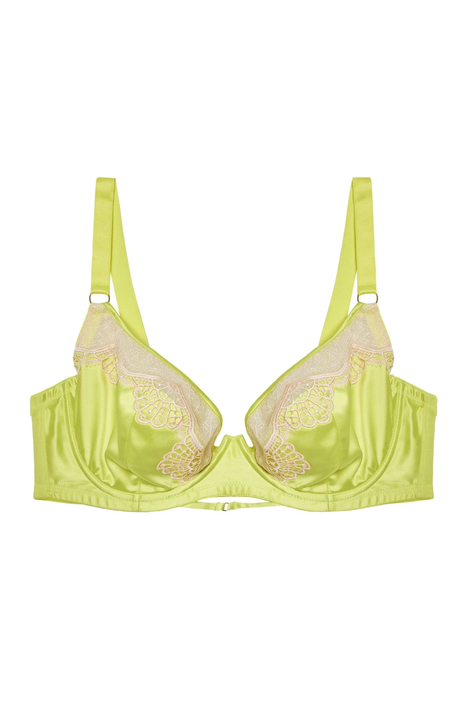 Get pulses racing in the Vivi Chartreuse Plunge Bra. This striking lime green bra is finished with beautiful cream lace which will undoubtedly attract attention. Match with our Highwaist Brief for the perfect complementing set.
