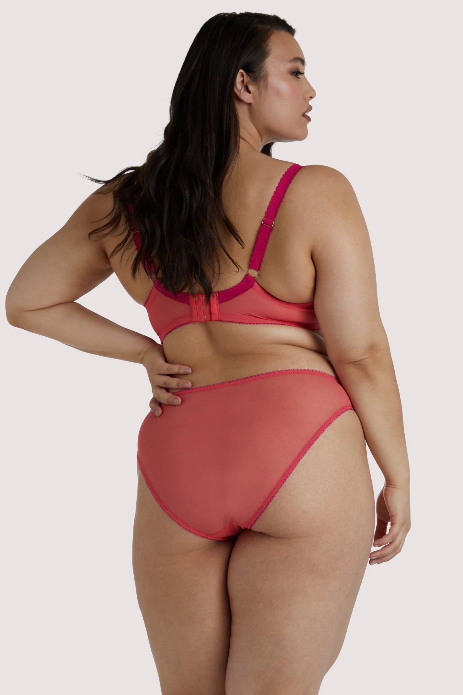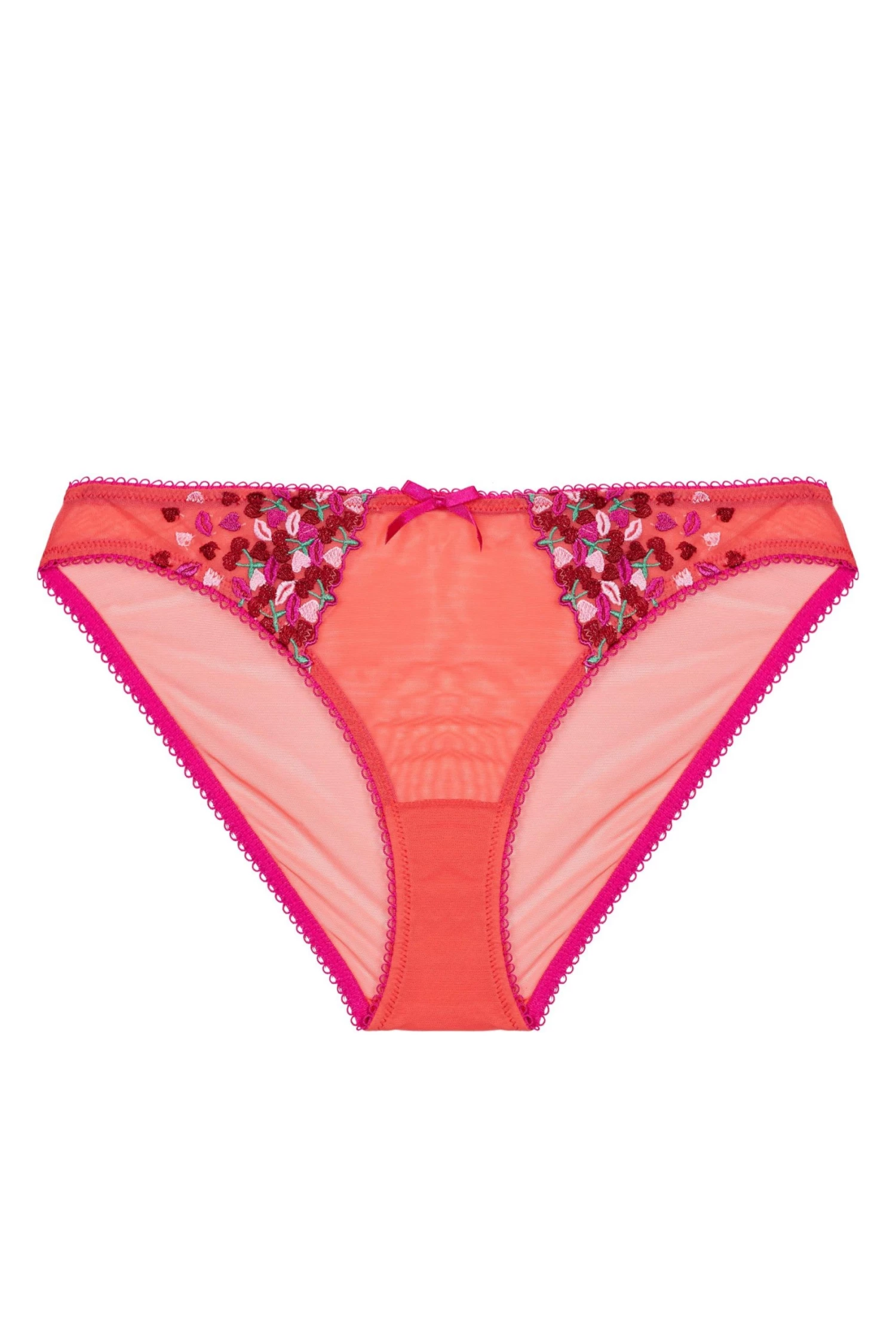 Feel playful in our Cherry Embroidery Coral Brief. Crafted from pink sheer mesh with intricate hearts, lips and cherry embroidery on top for extra sassiness. Match with our Cherry Plunge Bra and our Suspender Belt for a sassy set of dreams.