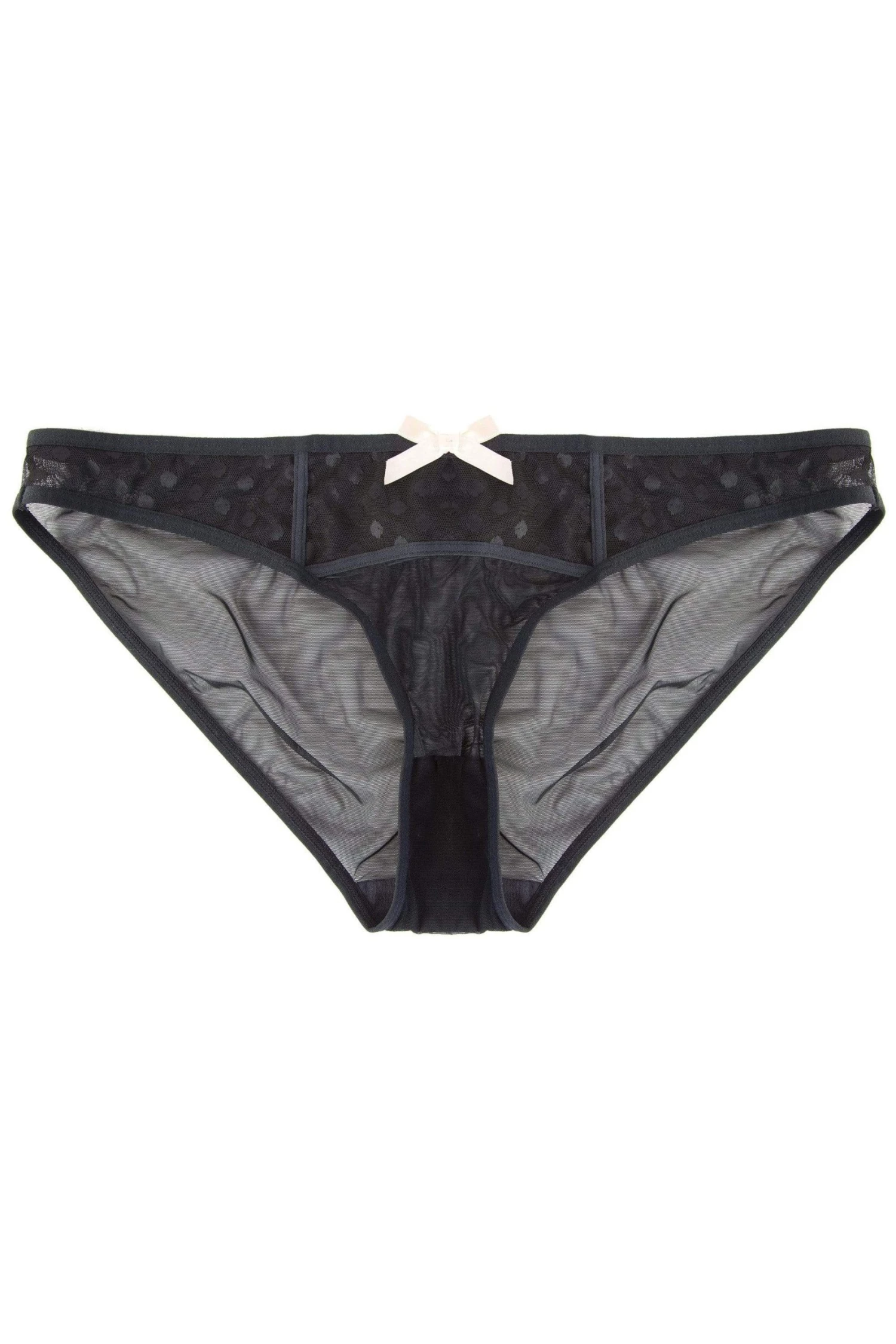 Bring some glamour into your life with our playful and cheeky Isa brief! Isa features teasing polka-dot lace and mesh panelling across the front and back, and is adorned with a peach bow at the centre.