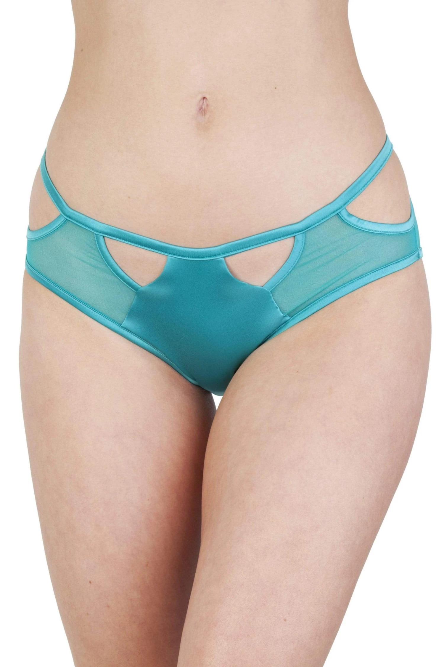 Exude sex appeal in our raunchy Junko in a fresh and playful turquoise colour! The briefs feature soft satin front and mesh back, as well as lashings of straps on the front and sides to accentuate the waist and create sexy peaks of flesh underneath.