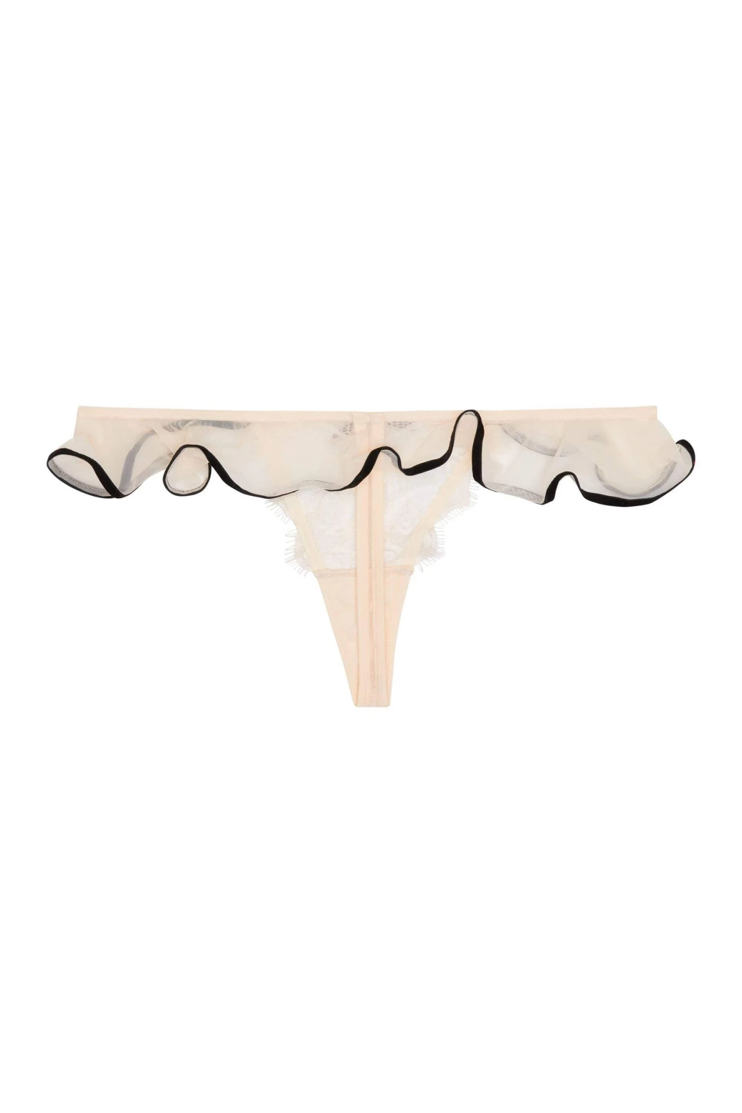 Meet your new lingerie-drawer staple! The Ribbon Slot set is a classic with it’s eyelash lace detail, mesh panels and contrasting black ribbon slot detail. The thong has a flirty frilled hip embellishment, finished off with a perfect rose and bow in the center.