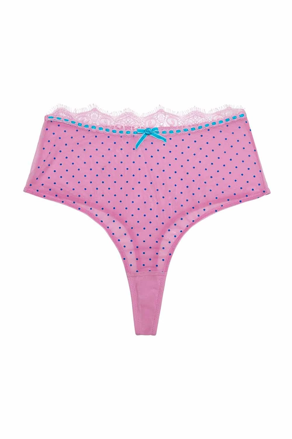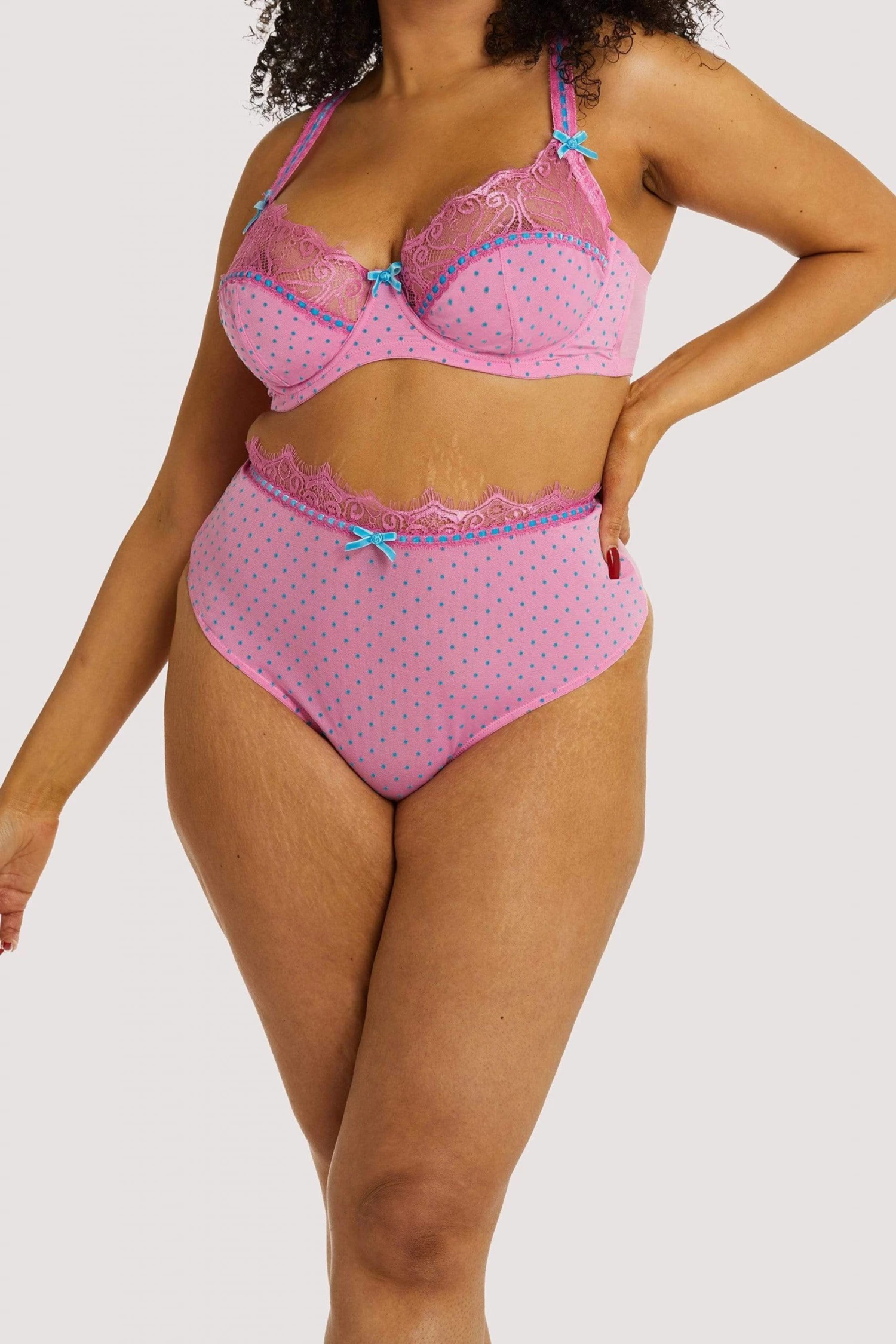 Be pretty in pink and definitely make the boys wink in this Sophia set. Featuring a pop of colour from blue polka dots, delicate floral lace and finished off with perfect bow detailing. Complete the look with the bra for a match made in heaven.