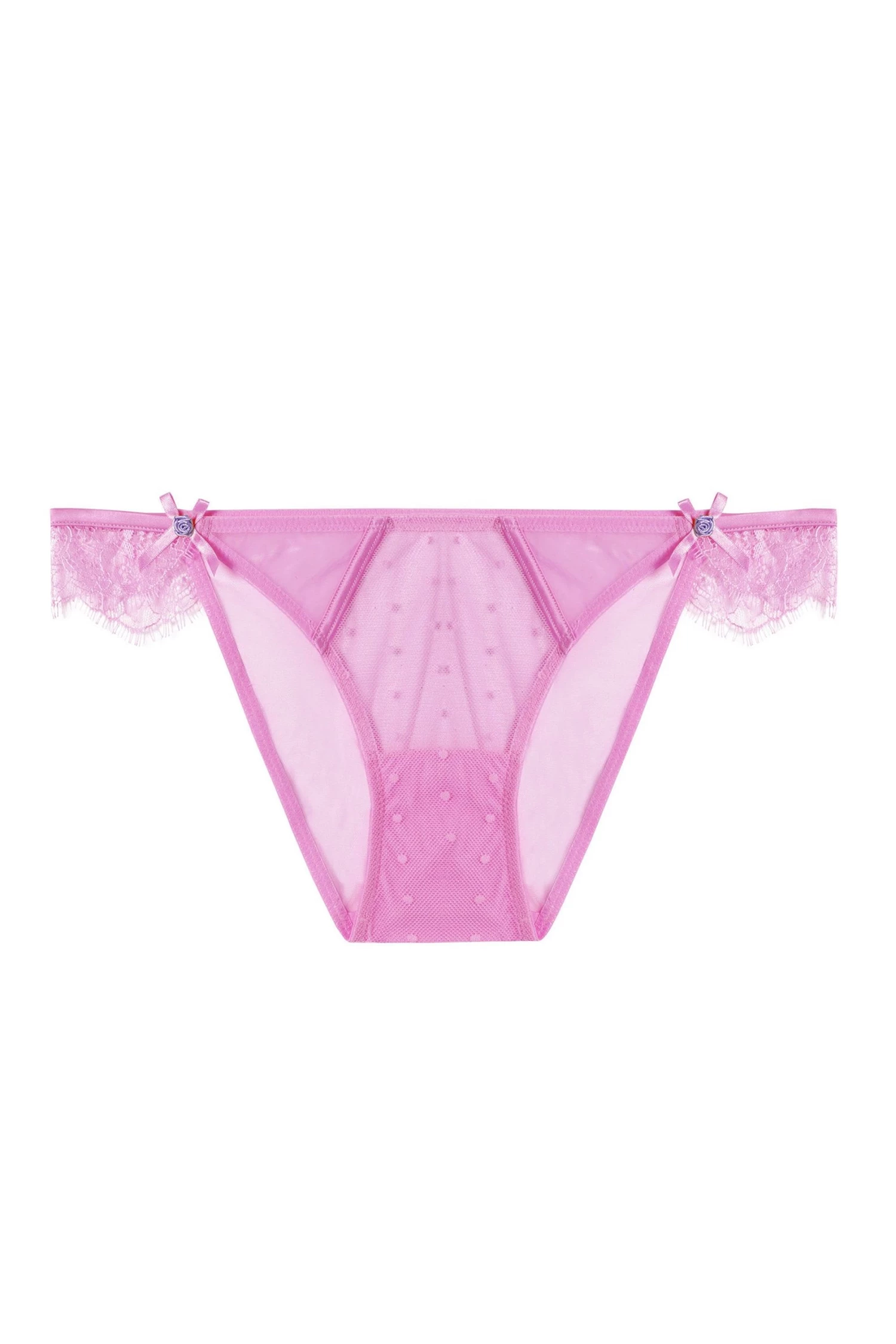 With her spotted mesh, lace edges and satin bow detailing, she makes herself known. She comes in a sweet candy pink colourway, and is finished with a full mesh back. She’s simply unmissable, a unique addition to your lingerie drawer…