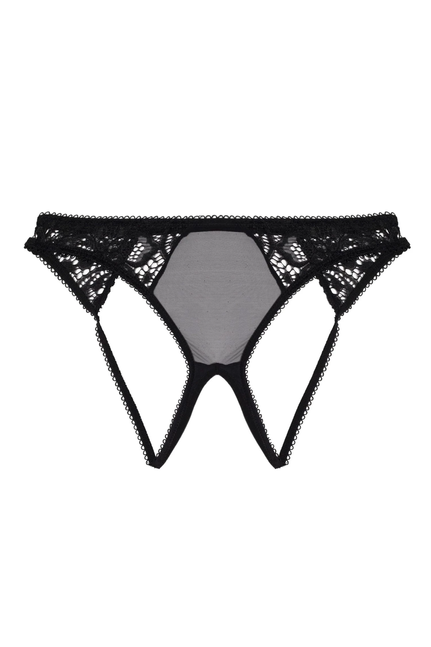 Playful Promises black brief featuring a cut out back, open gusset with delicate lace and mesh to ensure you always feel your sexiest. Complete the look with a black bra from our collection.