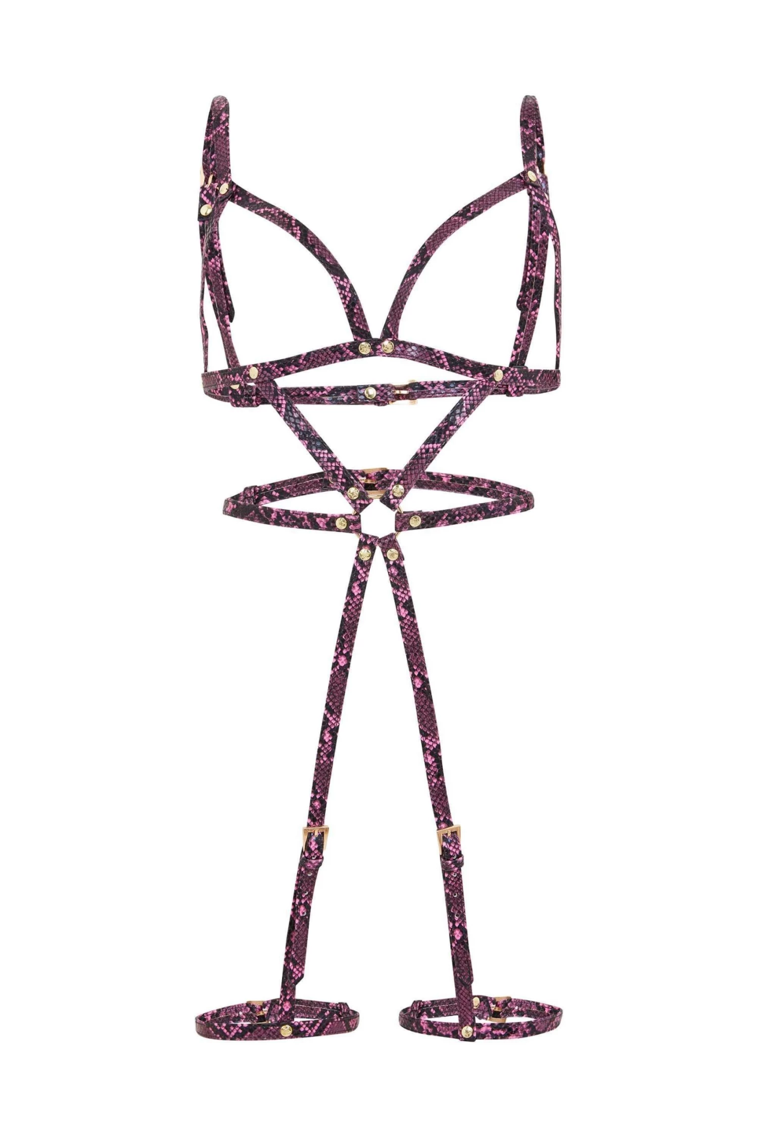 This sssssexy snakeskin open cup style harness only gets better with the extendable leg cuffs.