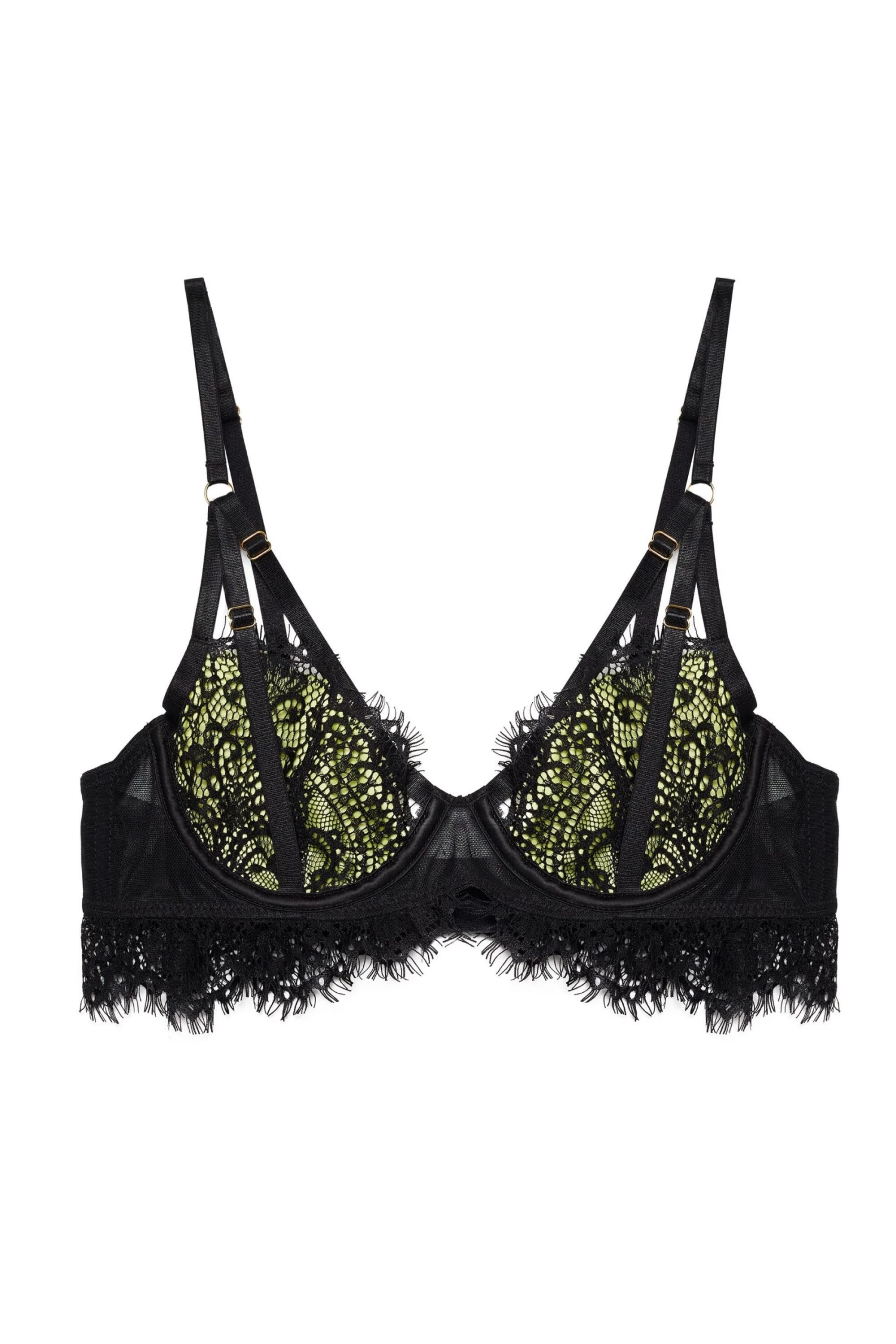 Strap up in our Nora Lime net and Black embroidery Bra. Featuring a harness detail and beautiful lace trim this bra has the perfect amount of allure. Match with our Nora Thong for the ultimate set.