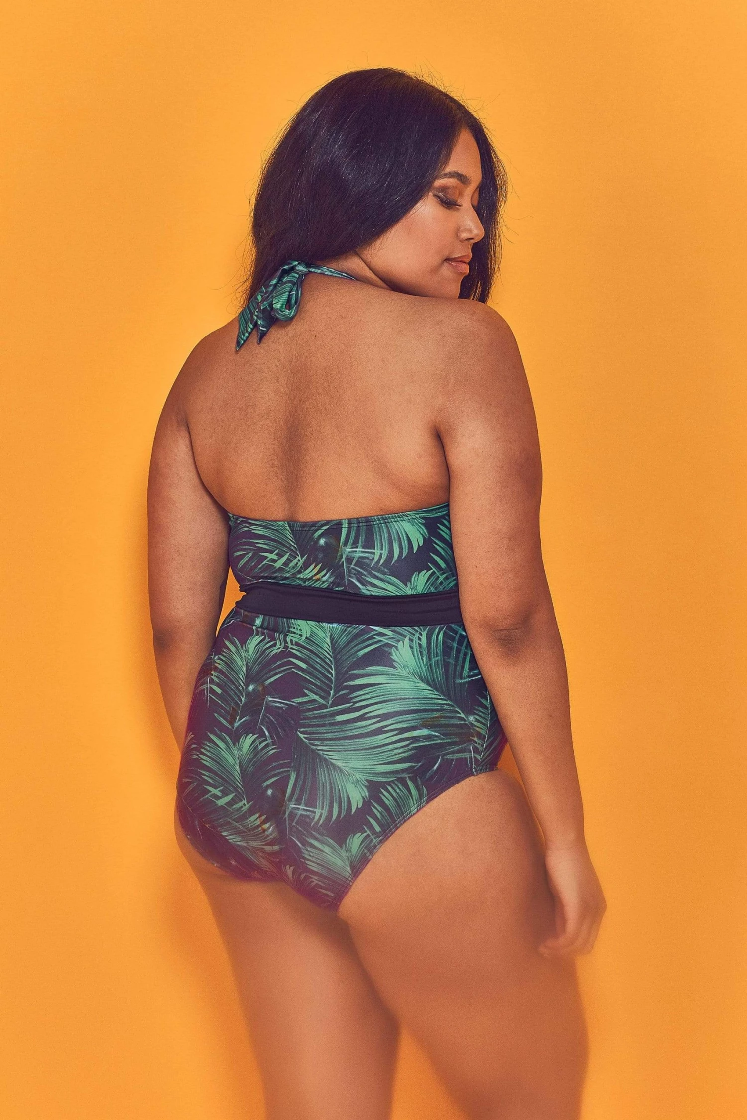 Take the plunge in our tropical palm belted swimsuit.